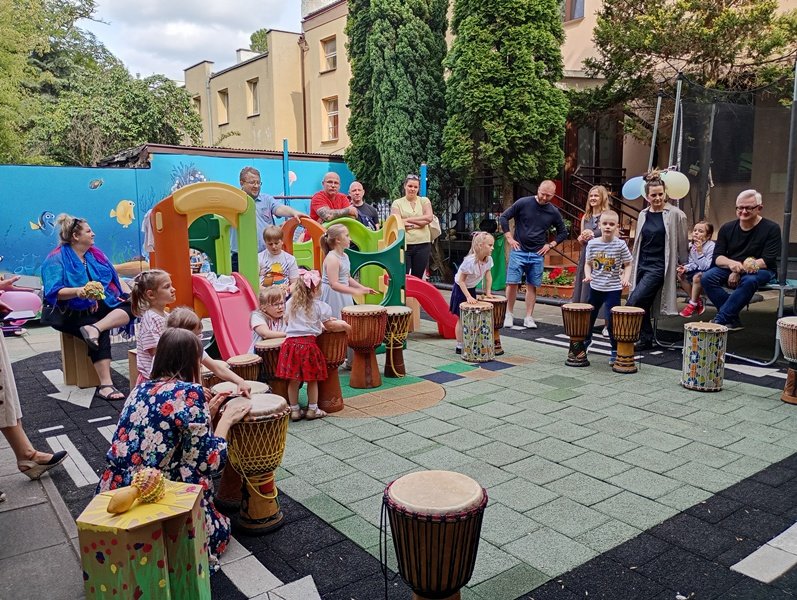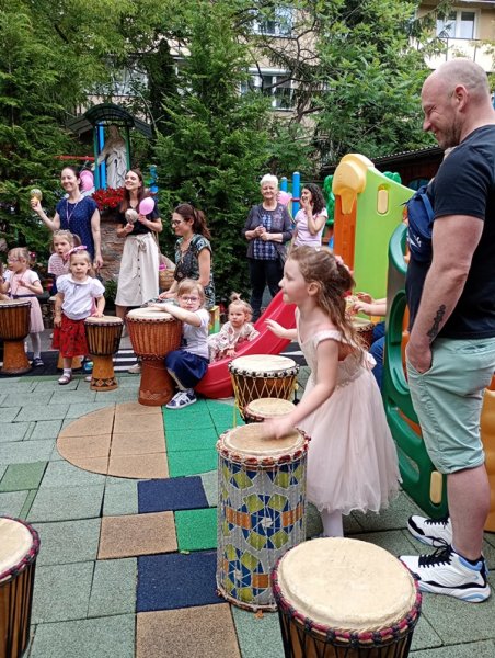 17 czerwca 2025r. obchodziliśmy hucznie 30 lat przedszkola, święto Rodziny i pożegnanie przedszkola. 3 wielkie uroczystości w jednym dniu. Najpierw dziękowaliśmy wspólnie z rodzicami podczas mszy św. w naszej Kaplicy, następnie występy dzieci, życzenia dla Kochanych Rodziców, nagrody dla dzieci, zabawa na placu zabaw z Rodzicami, występ bębniarski Caspara z Afryki, lody, poczęstunek, życzenia i… zabawa z Rodzicami i Wychowawcami. Najfajniejsza była zabawa z piłkami plażowymi, wszyscy dobrze bawiliśmy się długo, długo i… radośnie. Dziękujemy to był piękny czas wspólnoty przedszkolnej !!!