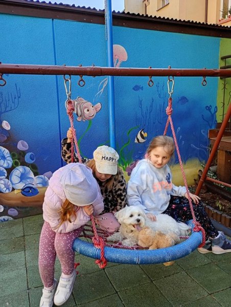 Dogoterapia 21 kwietnia 2025 Aktualności 35 Likes 187 Views Jampik Gabrysi odwiedził nasze przedszkole i z ogromną radością zarówno pieska jak i dzieci zabawa na placu trwała. Każdy mógł pobawić się z Jampikiem a on wesoło szczekał i merdał ogonkiem. Dziękujemy p. Agnieszce za miłą niespodziankę dla dzieci. [Włącz pokaz slajdów] Poprzedni Następny